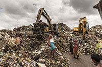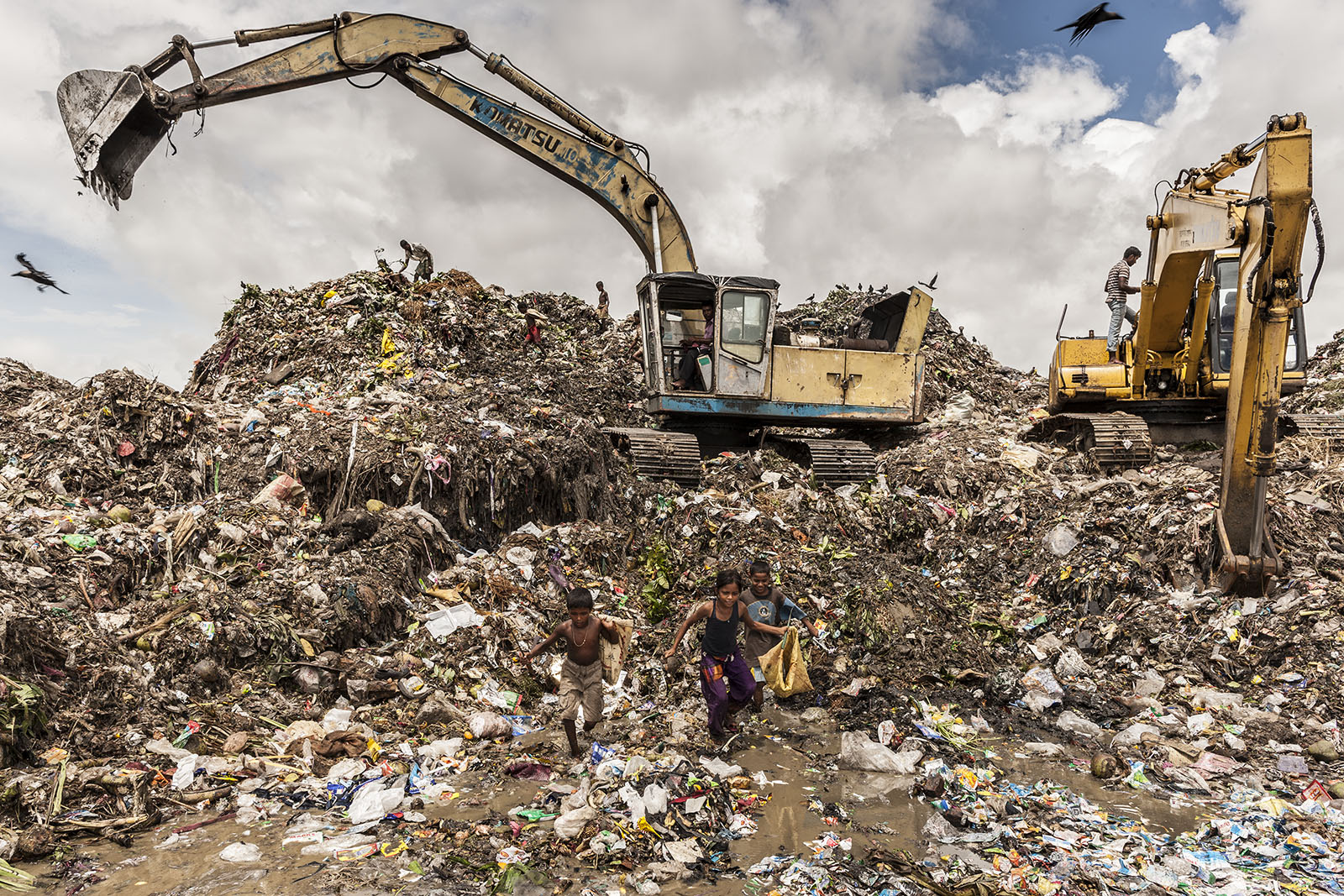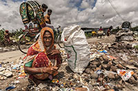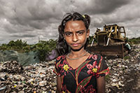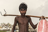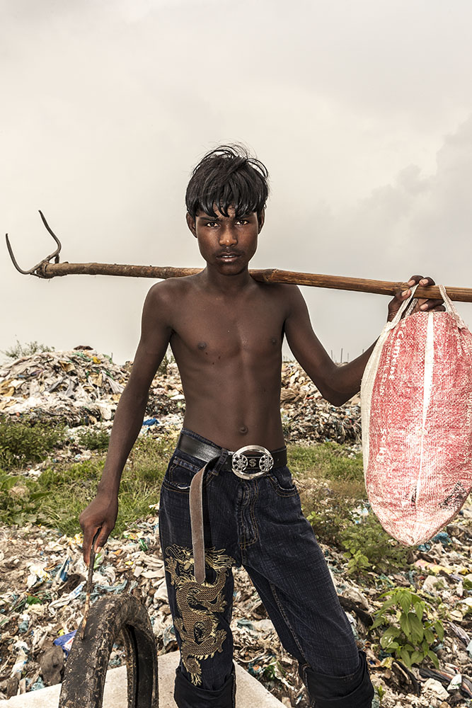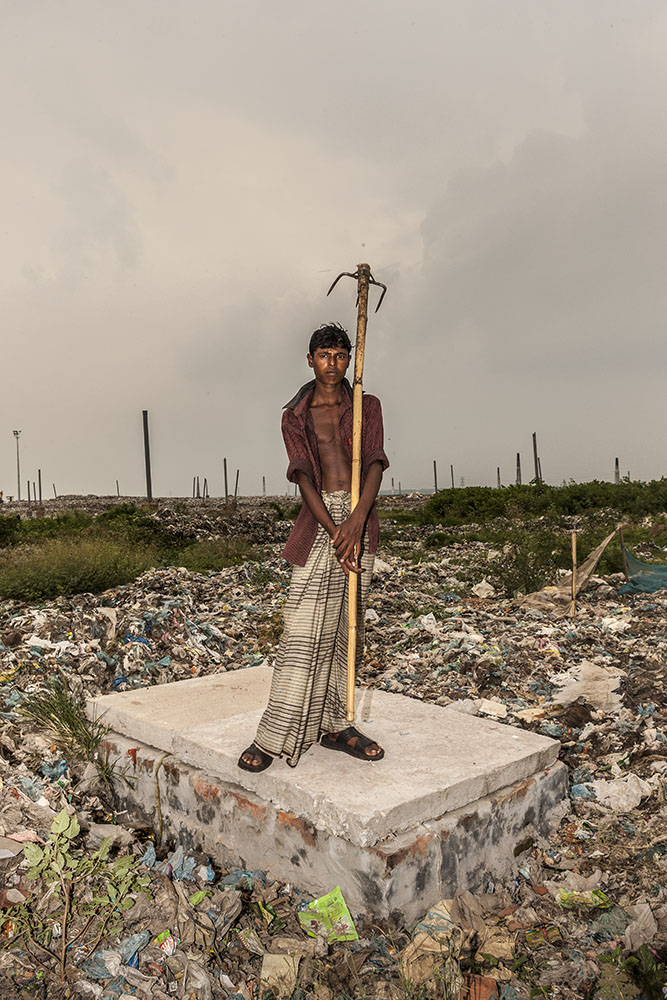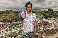 Bangladesh is a rapidly urbanising country where many of the urban poor have to make their homes wherever available – industrial wastelands, slums built atop sewage pipes and landfills. Waste picking provides a source of livelihood to extremely poor people with no other employment opportunities. It’s the last resort to street children, the elderly, widows, migrants, and the disabled. Living and/or working on the landfills they’re exposed to hazardous materials such as faecal matter, toxic materials, chemical residues and heavy metals.